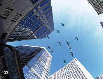 学生陈涛对人们总是低头或平视的习惯提出质疑,他希望人们向上看,关注头顶上的事,因为蓝天才是释放情怀的空间。他认为城市的天空是被高大的建筑物切割和遮挡了,而被切割和遮挡的天空正是人们渴望的未来世界。他希望通过它的作品提醒人们,自然已经在城市化的进程中与生命共同转换成了不可逆转并远离天然的第二自然。向上看,人们可能才会发现释放情怀的空间已经变成怎样的一种现实状况,也许天然美丽的世界还能在人们的关注下呈现出它以往的第一自然的光彩,就像那进入城市身体的大雁最终将穿越第二自然,飞翔在远远的天然的未来。